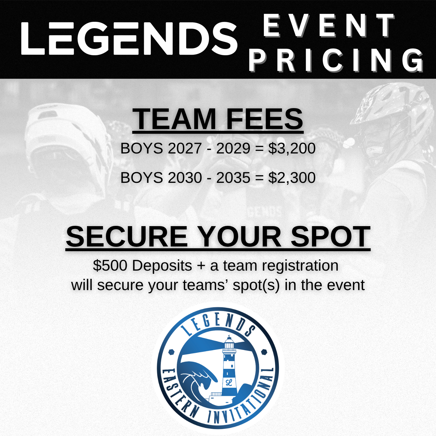 Any schedule requests must be submitted in writing to events@legendslax.com at least 30 days prior to the start of the tournament. Schedule requests are not guaranteed but Legends will do our best to accomodate if received within the timeframe.