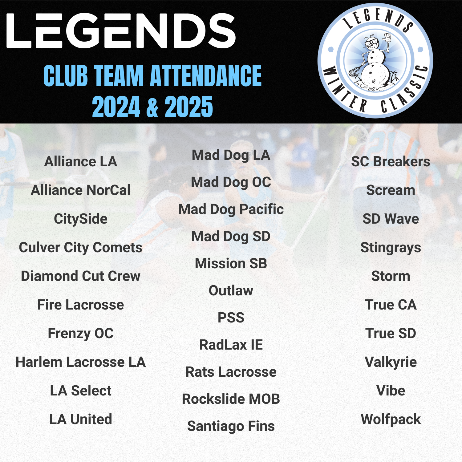 - For registration questions or assistance contact: Events@LegendsLax.com